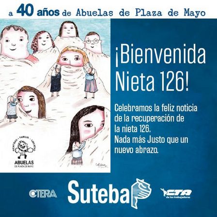 SUTEBA expresó su felicidad por la aparición de la Nieta Número 126