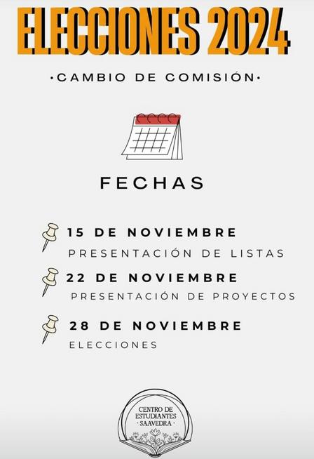 El cambio de Comisión Directiva comenzará a darse, el día 15 de noviembre, con la fecha límite para la presentación de listas, el 22 de noviembre se hará la presentación de proyectos, y el día 28 del mismo mes tendrán lugar las elecciones.