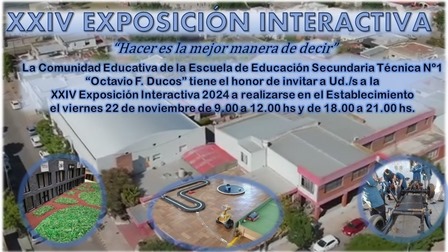 La nueva edición de la Exposición Interactiva de la Escuela Técnica Número 1 Octavio Ducos se llevará a cabo en Francia esquina Pellegrini de Pigüé.