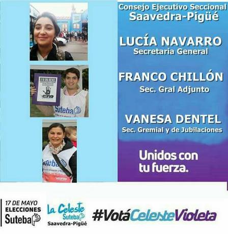 Los candidatos al Consejo Ejecutivo Seccional son Vanesa Dentel, Lucía Navarro, y Franco Chillón.