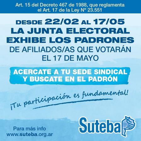 Es posible acercarse a la sede sindical de SUTEBA para observar el padrón de los próximos comicios.
