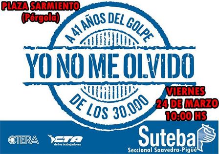 Habrá un acto por el Día de la Memoria, la Verdad, y la Justicia.