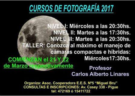 El Profesor Carlos Alberto Linares estará dictando, en la Escuela Secundaria Número 5, una serie de cursos de fotografía para distintos niveles que abarcan a principiantes como así también a alumnos avanzados.