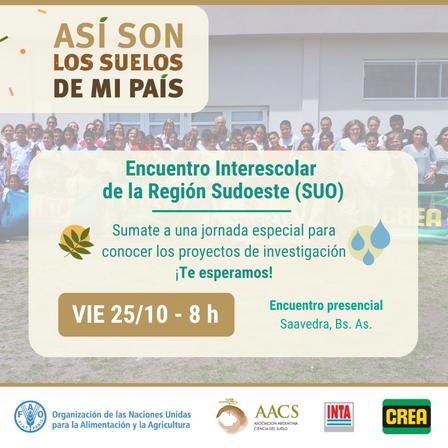 En la Confitería de la Asociación Rural de Saavedra, este viernes, 25 de octubre, a las 8.00 horas, se llevará a cabo la presentación de las Mesas Valorativas del Programa 'Así son los suelos de mi país' que cuenta con la organización de INTA, CREA, la Asociación Argentina de la Ciencia del Suelo, y la Organización de las Naciones Unidas para la Alimentación y la Agricultura, contando con la asistencia de profesionales provenientes de Buenos Aires y Gualeguaychú con el objetivo de continuar promoviendo el cuidado del medio ambiente y el suelo a través del trabajo en red.