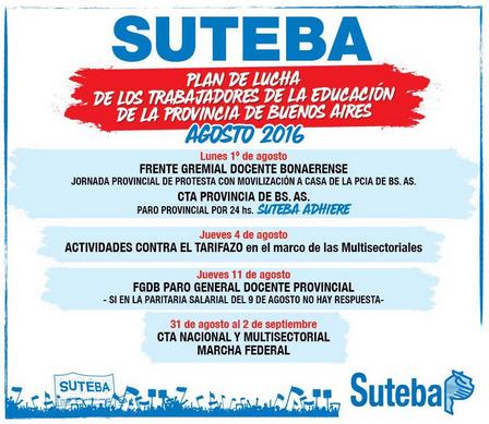 En la jornada de hoy personal del SUTEBA estará participando, junto a sus afiliados, de una nueva manifestación.