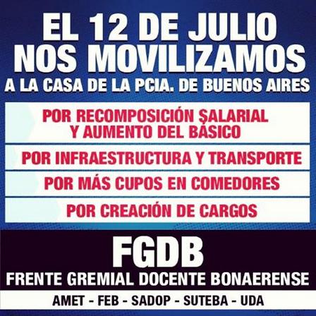 Hoy, en la Casa de la Provincia de Buenos Aires, tendrá lugar la movilización de los docentes del Frente Gremial.