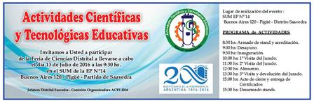 En el marco de las actividades previstas por el Bicentenario el miércoles tendrá lugar, en el SUM de la Escuela 14, se hará la Feria de Ciencias Distrital.