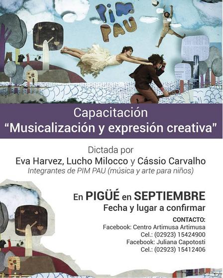 Integrantes de PIM PAU estarán en Pigüé, durante el mes de septiembre, a través de ARTIMUSA, dictando una jornada de formación.