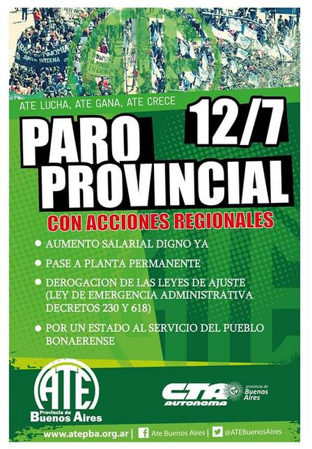 ATE Seccional Bahía Blanca convoca, para el martes, a un paro provincial.