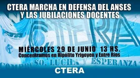 Durante el día de hoy, miércoles, la CTERA se moviliza en defensa del ANSES y las jubilaciones docentes.