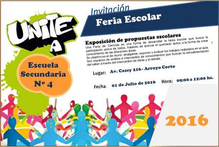 El viernes, a las 9.00 horas, hasta las 12.00, tendrá lugar la Feria Escolar de la Secundaria 4 de Arroyo Corto.