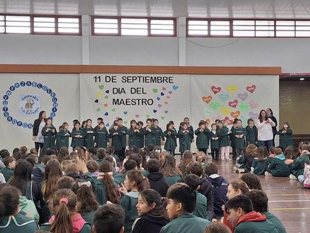 Hoy estamos juntos, para valorar el rol de todos y cada uno de los docentes, porque a través de su tarea, la educación, fuente de progreso tal como la conceptualizó Sarmiento, se hace presente en las escuelas brindándonos la posibilidad de imaginar tantos futuros posibles como niños haya en las aulas. El acto fue realizado por las seños y alumnos de primer grado".