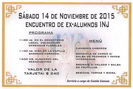 Ya se encuentran las tarjetas a la venta en el Instituto Niño Jesús para el Encuentro de ex alumnos del sábado 14 de noviembre próximo.
