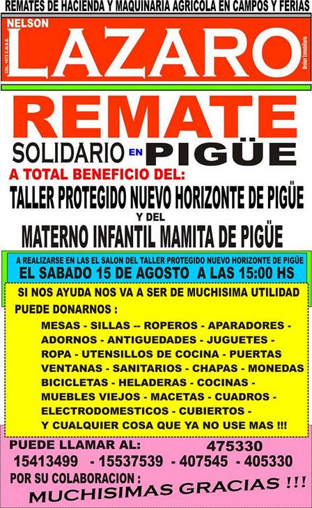 Se hará un Remate Solidario en Pigüé a total beneficio del Taller Protegido Nuevo Horizonte y del Materno Infantil Mamita.