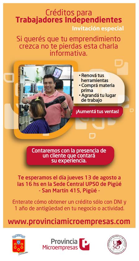 Provincia Microempresas y la UPSO realizarán una jornada informativa en Pigüé.