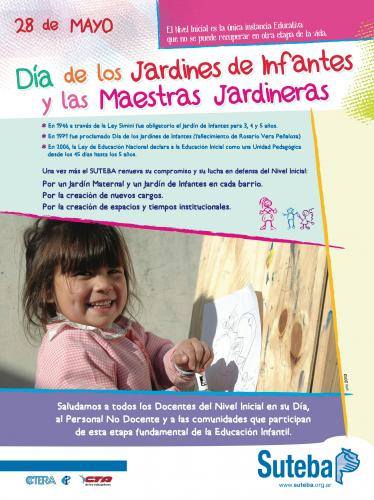 Por eso es que desde el SUTEBA, saludamos a todas las maestras jardineras en su día".