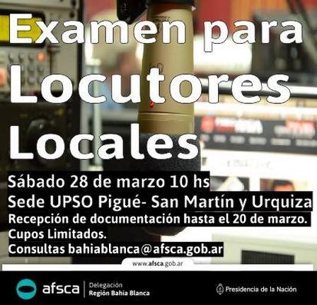 Los interesados en rendir examen de Locutor Local deberán inscribirse previamente.
