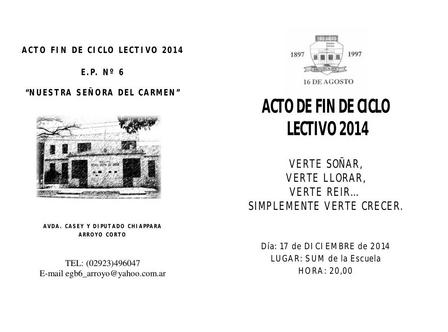 La Escuela Pública Número 6 de Arroyo Corto estará llevando a cabo el acto de la Escuela Pública Número 6.