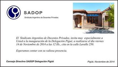 El viernes 14 de noviembre tendrá lugar la inauguración oficial de la Delegación Pigüé de SADOP.