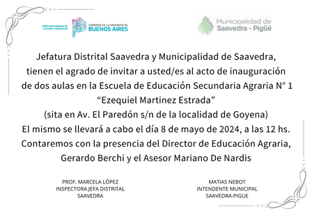 Inauguraron las nuevas aulas de la Escuela Agraria de Goyena