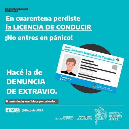 Si la licencia fue extraviada la denuncia puede formularse on line ingresando al portal del Gobierno de la Provincia de Buenos Aires.