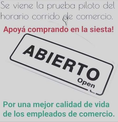 Bajo el lema 'Por una mejor calidad de vida de los empleados de comercio' hay una campaña, a través de las redes sociales, para acompañar la continuidad del horario corrido en los locales.