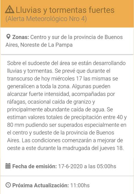 El Servicio Meteorológico Nacional anunció, para esta jornada, registros que podrían alcanzar hasta 80 milímetros.