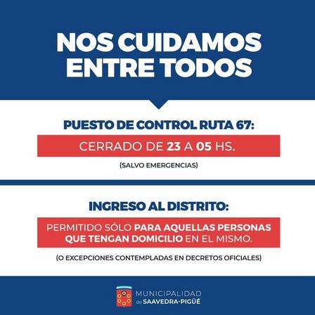 El Municipio difunde información sobre el funcionamiento del puesto de control en Pigüé