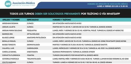 La Asociación Médica reiteró la relevancia de generar contactos telefónicos para solicitar los turnos.