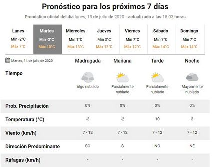 La sensación térmica, a esa misma hora, era de cinco grados bajo cero en la localidad.