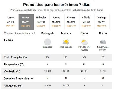 La sensación térmica, a esa misma hora, se encontraba en un grado centígrado en la ciudad.