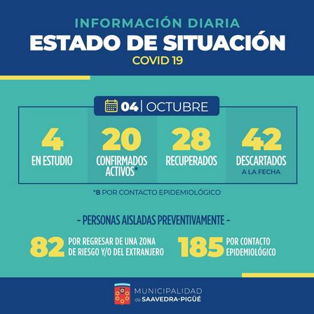 Hay 1 recuperado según el reporte diario de la pandemia que corresponde al resumen del 4 de octubre por la noche