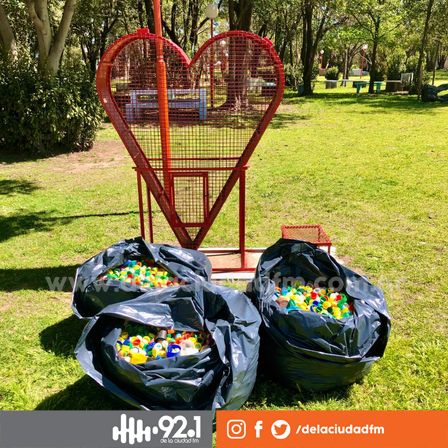 Luego de haber sido completado de tapitas plásticas el contenedor de estos elementos ya fue vaciado.