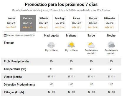Este viernes 16 de octubre, por la tarde, la temperatura más elevada podría alcanzar los treintayun grados centígrados.