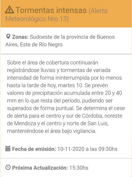 En Pigüé el Servicio Meteorológico Nacional está dando a conocer un nuevo reporte sobre posibles lluvias fuertes.