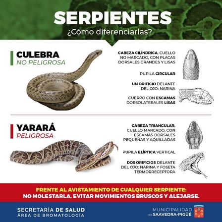 Varias recomendaciones fueron presentadas por las autoridades municipales para evitar accidentes con ofidios y actuar ante una mordedura.