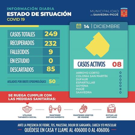 En el Partido de Saavedra presentaron el reporte diario de la pandemia que corresponde al resumen del 14 de diciembre por la noche