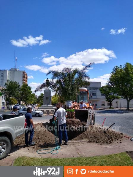 Plantaron una palmera de igual variedad que la existente hasta hace un tiempo en el boulevard de la Avenida Casey.