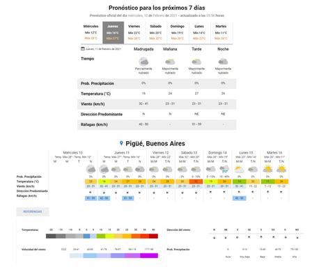 La sensación térmica, a la misma hora, en la localidad de Pigüé, contaba con catorce grados centígrados.