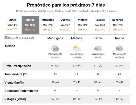 Luego de las 5.00 horas, en la ciudad, el registro de la temperatura marcaba hoy doce grados.