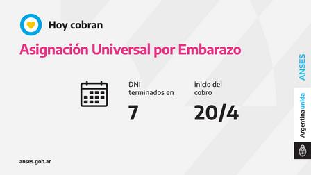 Con la utilización de la tarjeta de débito cobran la Asignación Universal por Embarazo las titulares con documentos finalizados en 7.