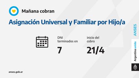 Con la utilización de la tarjeta de débito, hoy, miércoles, perciben la Asignación Universal por Hijo y la Asignación Familiar por Hijo titulares con documentos concluidos en 7.