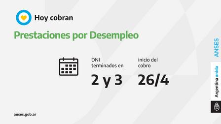 Hoy, lunes, perciben la Prestación por Desempleo las personas cuyos documentos concluyan en 2 y 3.