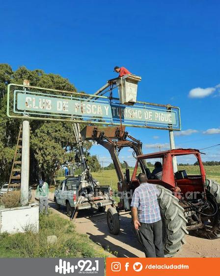 En FM de la Ciudad Carlos Chauvié remarcó “decidimos renovar la entrada un poquito. Ya trajimos el cartel acá a Pigüé para que lo arenen, y lo pinten. Después le vamos a poner el nombre del Club de Pesca y Turismo de Pigüé”.
