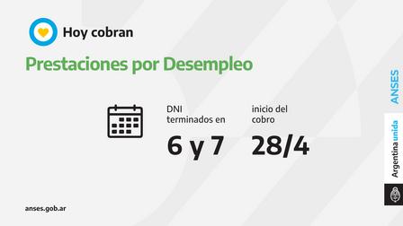 Hoy perciben la Prestación por Desempleo las personas cuyos documentos concluyan en 6 y 7.