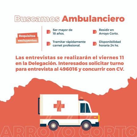 Los requisitos son ser mayor de 18 años, residir en Arroyo Corto, contar con disponibilidad las 24.00 horas, y tramitar rápidamente el carnet profesional de conductor.