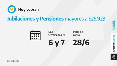 Las sucursales bancarias habilitadas atenderán por ventanilla a jubilados, jubiladas, pensionados y pensionadas que tengan haberes entre 25.923 pesos y 155.203 pesos y sus documentos terminen en 6 y 7.