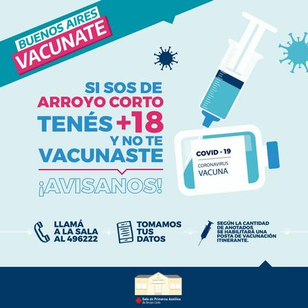 El contacto puede darse al teléfono de la Sala Hogar para, una vez anotada cierta cantidad de personas, lograr habilitar la Posta de Vacunación en Arroyo Corto.