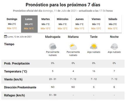 La sensación térmica, a la misma hora, en la ciudad, era de medio grado bajo cero.