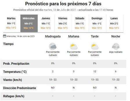En Pigüé la sensación térmica, a la misma hora, era de dos grados bajo cero hoy por la madrugada